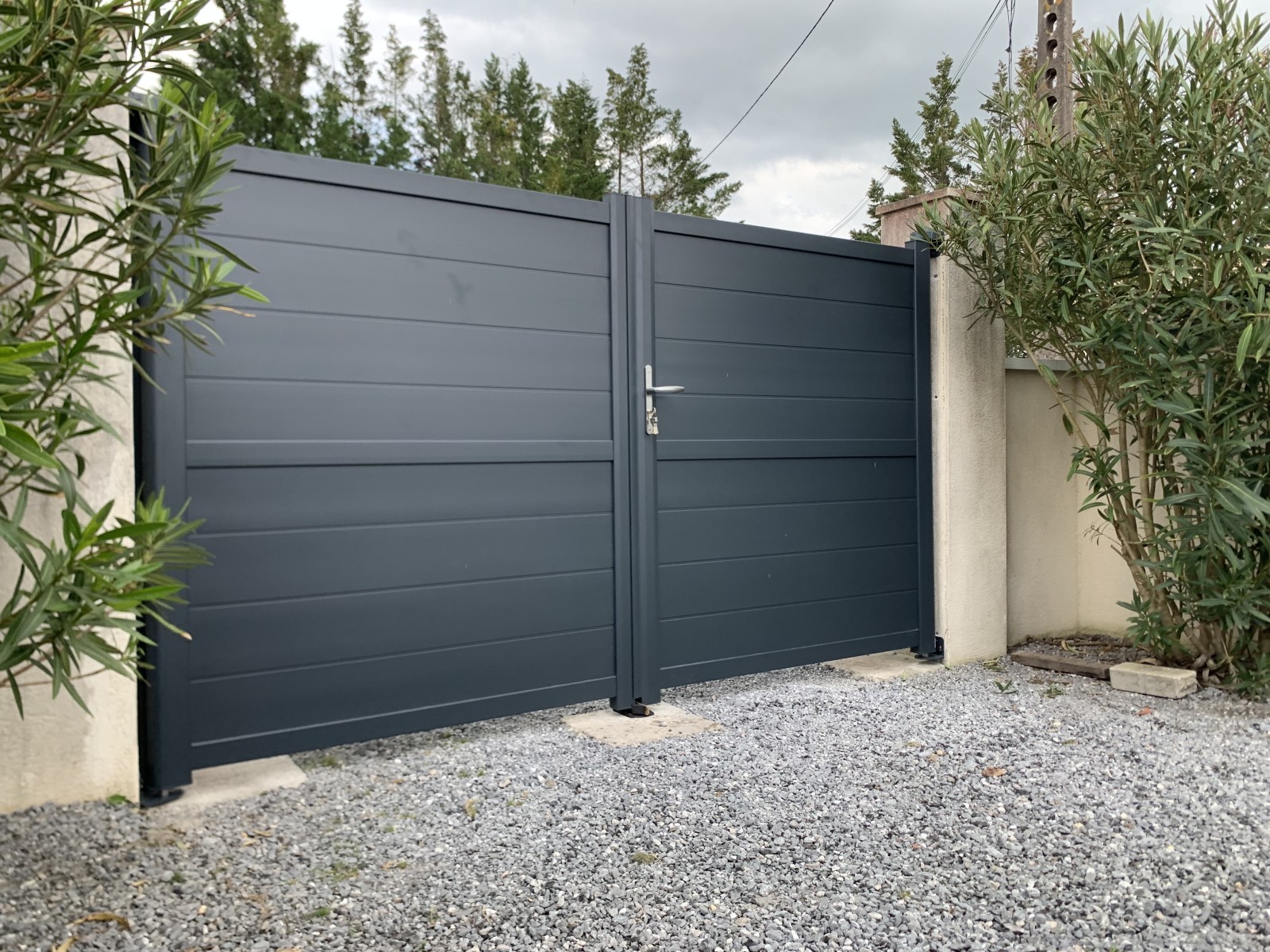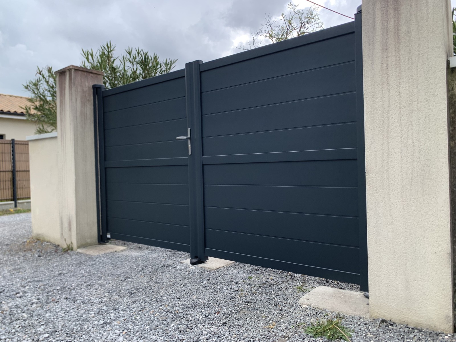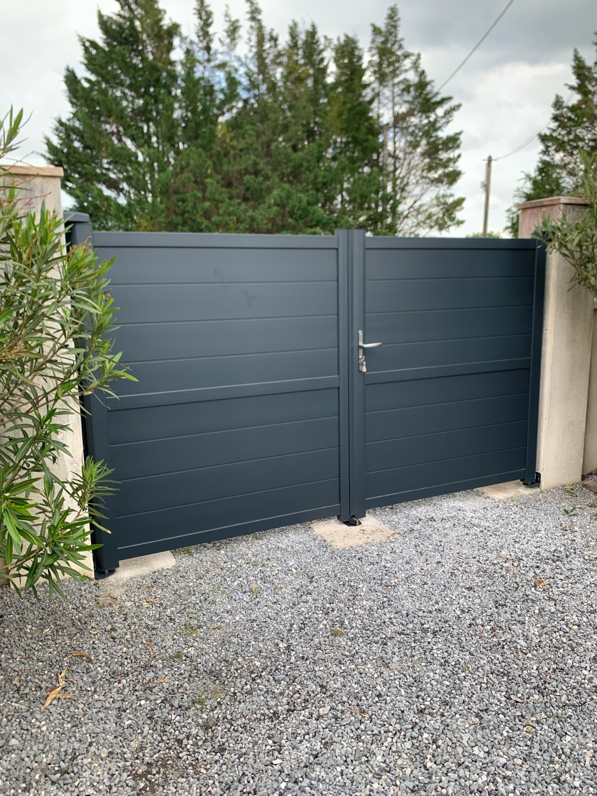 Fourniture et pose d’un portail en aluminium manuel gris anthracite de marque GP PORTAIL sur la commune de Artigues près Bordeaux, suite à un accident avec un véhicule .
