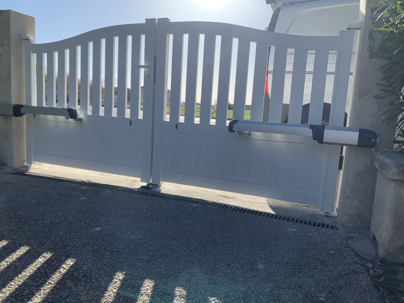 Dernière réalisation : dépose d’un portail en acier usé, installation d’un portail aluminium à deux battants et mise en place d’un automate BFT Kustos pour un confort optimal. Profitez d’un service clé en main, alliant durabilité et modernité.